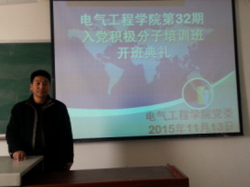 根据学校党委的统一安排,为提高我院入党积极分子的思想政治觉悟、道德修养和理论水平,2015年11月13日下午在4310教室,电气工程学院举办第32期入党积极分子培训班开班仪式。出席开班仪式的有电气工程学院党委书记达娃次仁老师、副书记普布次仁老师、以及32名入党积极分子。