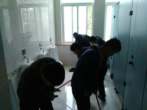 在本次活动中,同学们服从安排,积极参与,对第四教学楼每间卫生间都进行了细致认真的清理。首先,同学们将卫生间地面清理干净,做到地面无污渍、桶内无垃圾。然后放水将卫生间槽内冲干净,使得内无堆积物。最后把地面的污水拖干净。在同学们的努力下,本次清洁活动取得圆满成功。