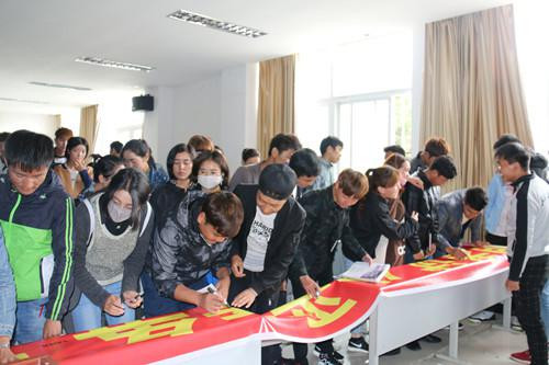 此次会议上,普布次仁书记对我学院学生做了考前动员,要求我学院学生要做到诚信考试、认真对待、积极备考,并且还在动员讲话中提及了一些考试中应注意的细节问题。接着,我学院所有学生认真阅读了考试规则,并填写了考前承诺书。大会最后,全体同学在宣誓横幅上庄重地签下了名字。
