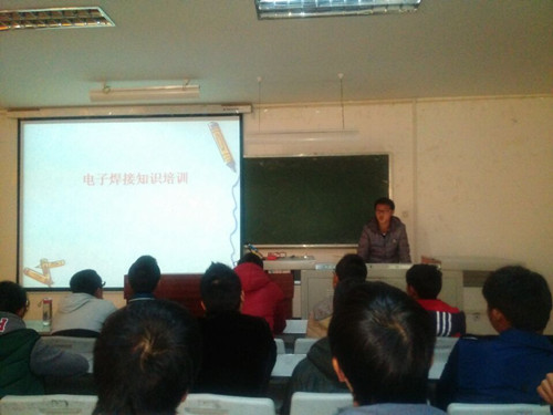 为增强电子部成员的焊接水平,更好服务农院,电气工程学院电子爱好者协会于2015年11月22日星期日下午十五时三十分在4101教室对电子部成员开展了电子部焊接培训活动。