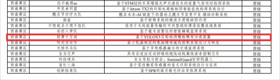 本次电气工程学院雪域雄鹰、雪域旋风、雪山智魂、高原旋风小队参赛项目依次为“基于西藏地区的土壤光照温湿度检测系统设计”、“智能接地夹”、“光储集成智能安全头盔”和“生命制水”,指导老师为吴军教授、朱瑞金副教授和扎西顿珠老师。水利土木工程学院“经费千万组”和“高原战队”小组参赛项目依次为“基于YOLOV5目标检测螺栓螺母分类装置”和“基于Rk3588s的智能实验室安防系统”,指导教师为郭永刚教授团队、苏立彬副教授、黄莺老师和李峰老师,其中由郭永刚教授、黄莺老师指导,研究生徐建宇、程思威、余明威团队作品“基于YOLOV5目标检测螺栓螺母分类装置”荣获西南赛区一等奖,并成功晋级研电赛西南赛区决赛。