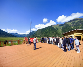 活动伊始,我院党委书记大巴桑用通俗易懂的语言为党员代表们讲述了非法边境线——“麦克马洪防线”的来源,并结合中央八项规定精神学习教育要求,深刻阐释本次主题党日的特殊意义,加强了党员代表们的国防意识、爱国意识以及国家安全意识。随后,党员们在承载深厚戍边历史的红色小牧屋前,在迎风招展的国旗下举行了庄严的宣誓仪式,奏唱国歌并重温入党誓词。在红色牧屋内,通过现场当地驻村干部的讲解,聆听了戍边军民感人事迹,参观历史文物,深刻感悟“艰苦不怕吃苦、缺氧不缺精神”的戍边精神。