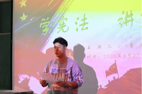 “声传宪法精神,言筑法治信仰”,我院于2025年9月27日15:30在第四教学楼4104教室组织开展“学宪法 讲宪法”主题演讲比赛,本次演讲比赛由学习部童玲主持,党团学干部担任评委,共计21名选手参加。