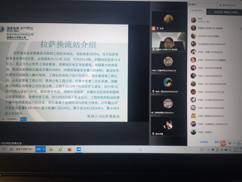 为了让同学们更加全面的学习专业知识,更好地将专业理论与实际应用结合起来。为更快地适应新时代本专业工作岗位的要求,更快、更好的为后期工作打下坚实的基础,积极开展校企合作,于11月10日19:00-21:00邀请国网西藏电力有限公司电力工程工程师杨利刚在腾讯平台给我院2020级本科生做了题为“西藏直流输电现状及入职国网的流程要求”的专题讲座。本次讲座由电气工程学院张涛主持,我院共计140余名师生参会。