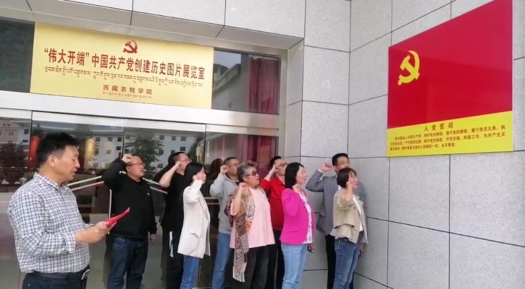 接着,在学校中国共产党创建历史图片展览室前,组织全体党员开展了重温入党誓词活动。