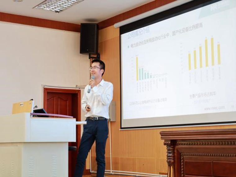 首先,张经理播放了有关南瑞公司宣传视频,同学们通过观看视频,对南瑞继保公司的基本情况有了较深一步的了解。随后,张经理从福利待遇、薪资、业务、发展规划等方面介绍了公司的总体情况。