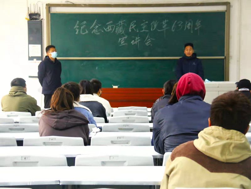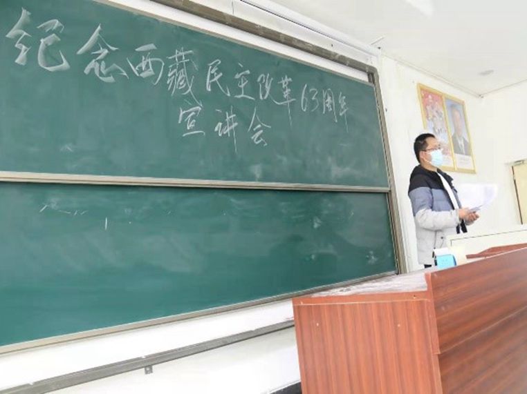 此次会议使我院党团代表了解到西藏民主改革的历史,深刻意识到现在幸福生活的来之不易,更加坚定要始终坚持党的领导,坚定不移感党恩听党话跟党走的决心。 为纪念西藏民主改革63周年,我院于3月28日上午在四教4108召开宣讲会。本次宣讲会由达娃次仁书记、普布次仁书记、学生党支部书记毛小军老师、团总支陈相宇老师宣讲,我院党团学代表参加。