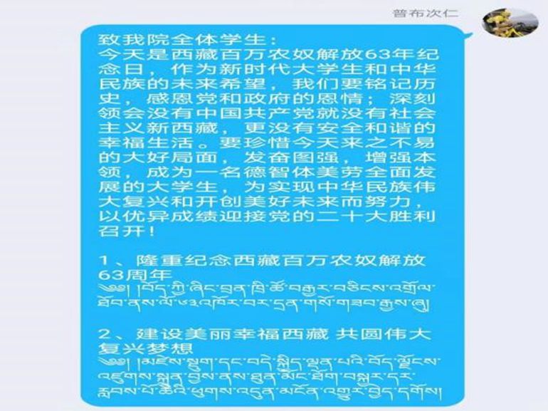 此次会议组织代表们观看了《新旧西藏对比》、《反分裂斗争》等视频,使大家进一步认清旧西藏残酷黑暗的历史以及新西藏和平幸福的生活。并通过线上班级群和LED,广泛开展了以纪念百万农奴解放63周年、民族团结进步和反分裂斗争等主题宣传教育。
