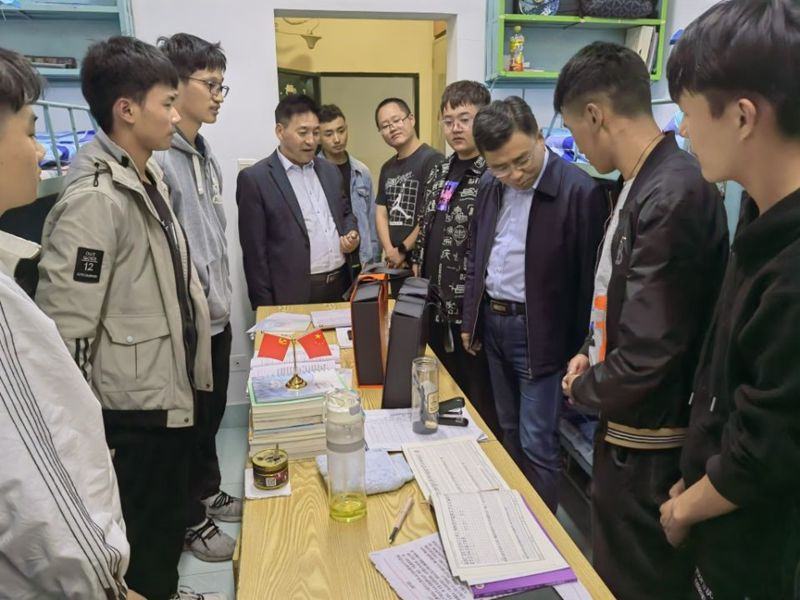 9月20日晚,冯建刚助理等人来到八栋宿舍楼的新生宿舍,为同学们送去节日祝福,亲自把慰问品送到同学们手中。在新生宿舍,达娃次仁书记与同学们亲切交流,详细了解了新生身体情况、学习进度、住宿条件等情况,及时处理存在的有关问题,并细心叮嘱同学在保证健康的前提下,要尽快适应环境,加强学习,努力提升自己的综合能力。在交流过程中,冯建刚助理还关切询问了贫困学生在生活中或学习中存在的困难,表示遇到困难一定及时向同学和老师反映,学院定会在生活与学习中给予同学们力所能及的帮助。