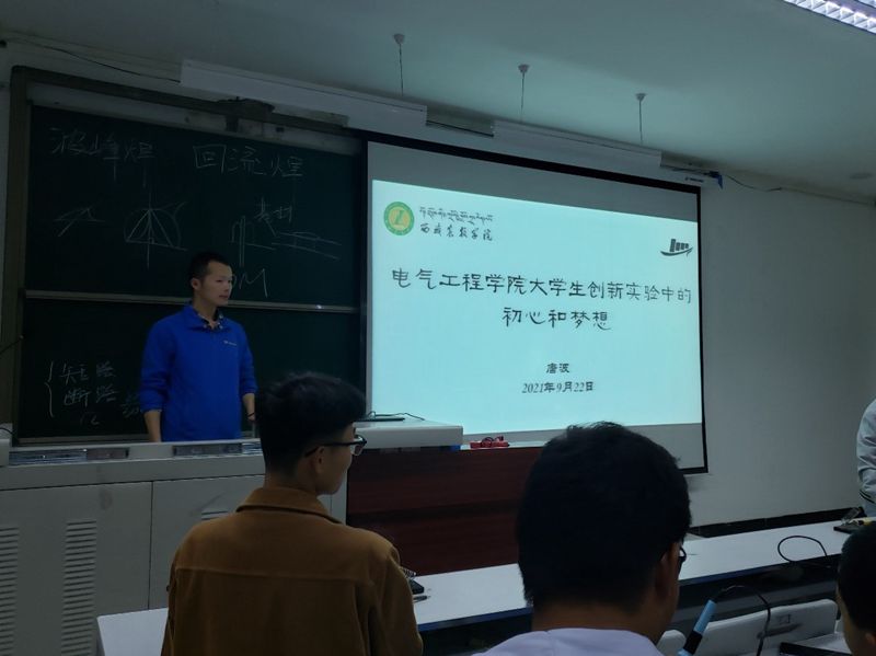 开营第一天,唐波老师以“电气工程学院大学生创新实验中心的初心和梦想”为题进行了实验室文化教育。通过图片展示了实验室在学院各级领导的关怀下、实验室师生的共同努力下,从无到有、从有到优的建设历程。实验室一直秉承着我校筹建精神和老西藏精神,在废旧的印刷厂厂房上一步一个脚印的将实验室越建越好。唐老师也向同学们讲了很多实验室成员的故事,激励同学们追求卓越、超越自我。最后唐老师给大家公布了训练计划,希望大家在训练营中能够有所收获,在训练过程中安全有序进行。正确操作相关设备,把人身安全放在首位,尽可能的保护设备安全。期望大家通过本次训练营建立电子技术相关知识基础,为后续在大学生创新实验中心进行专业交叉融合实践做准备。也预祝大家能够有一个美好而难忘的训练营生活,以梦为马,不负韶华。
