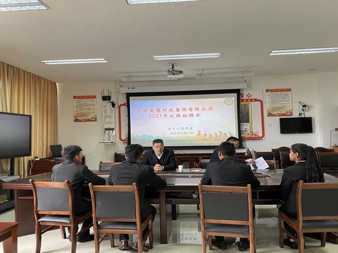 2021年5月11日下午,在电气工程学院会议室开展中环寰慧集团有限公司校园招聘会。参会领导有拉萨业务中心总经理郭其峰、副总经理刘雪松,我院达娃次仁书记和李朝霞院长、分管就业工作辅导员和2021届未就业毕业生。