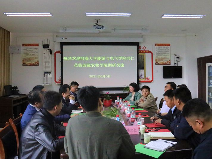 为了推动学院教育事业发展,促进人才培养质量,增进与援藏院校的交流与学习,2021年6月6日下午4:00,河海大学能源与电气学院党委书记娄健、院长吴峰一行7人莅临西藏农牧学院电气工程学院开展对口交流座谈会。我校党委副书记、副院长王从严、院长助理冯建刚、科研处副处长罗红英、教务处副处长姚学林、电气工程学院党委书记达娃次仁、副书记普布次仁、副院长蒋晓艳,各科室负责人及教师代表参加会议,由达娃次仁书记主持会议。