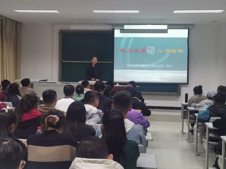 此次讲座我们很荣幸地邀请到了现就职于西藏国家电网西藏巴河发电公司副总经理何川老师,同时也是我院的老校友。何川老师为大家进行专题讲解。讲座期间,首先由何川老师对本次讲座的主题进行介绍,调动了同学们的兴趣,随即讲座正式开始。何川老师通过多媒体播放配合讲解的方式,娓娓道来我国的电力事业。内容首先从我国电力事业发展史讲起,使同学们加深了对我国电力相关专业知识的了解,将讲座气氛推向了高潮。随后的时间里详细的述说了人才战略以及电力发展和人才战略的关系。在何老师的精彩讲解下,同学们更加认识到了所学专业的重要性,明白了电力发展是人类需求和提高幸福的必然。讲座最后设有问答互动环节,旨在让同学们直接向老师提出疑问,面对面探讨专业问题,何老师对提出的问题逐一进行了耐心细 致的解答。(现场互动环节)