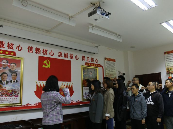 教工支部组织委员蒋晓艳同志领誓,与会全体党员面对鲜红的党旗,庄严的举起右拳过肩,重温了入党誓词:“我志愿加入中国共产党……永不叛党”,宣誓结束后,接着观看了“见证初心使命”三部系列片和一部教育警示片。