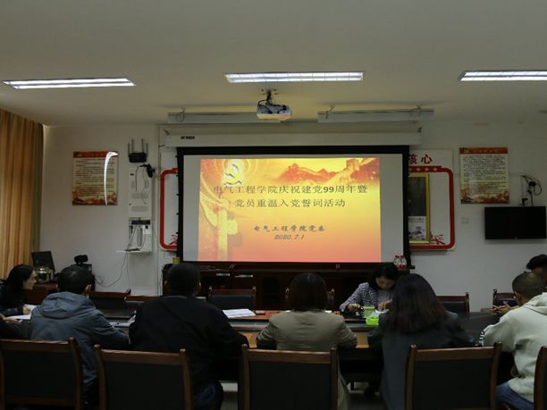 为庆祝中国共产党建党99周年,进一步提升党员宗旨意识,增强党支部的凝聚力和战斗力,电气工程学院教工党支部于7月1日上午10:00在学院党员活动室组织全体党员开展“庆祝建党99周年暨重温入党誓词”活动。