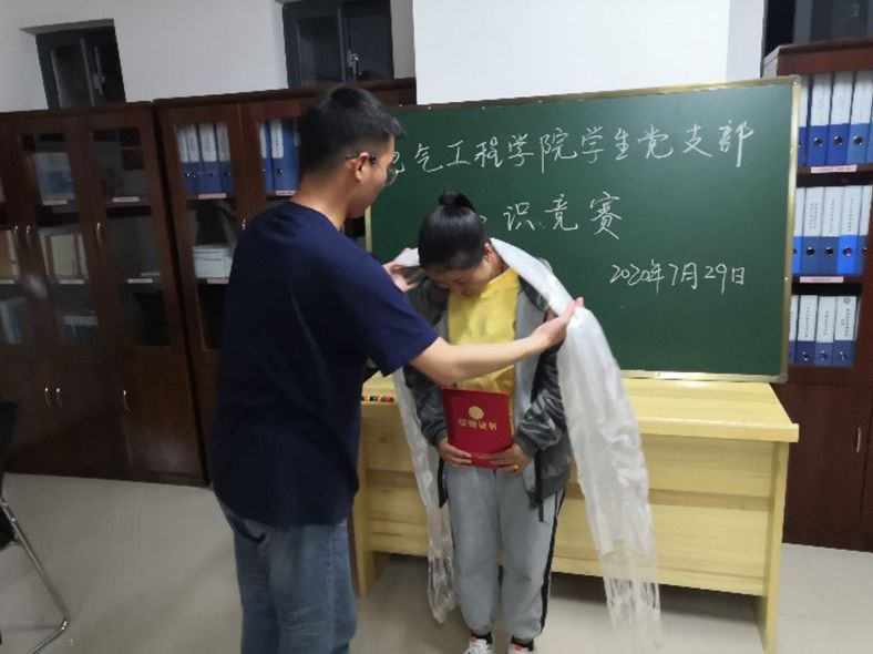 为了活跃党支部文化氛围,更好地促进党员之间的相互交流,进一步向党组织靠拢,2020年7月29日上午9:00,电气工程学院学生党支部在党员工作站举办了以“四讲四爱”为主题的党知识竞赛,该活动由学生党支部组织委员张德峰主持,全体党员工作站成员参加。