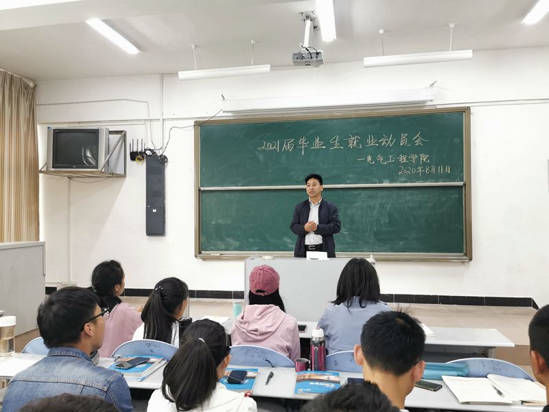 在严峻的就业压力下,为了让2021届毕业生及早了解就业形势,增强就业紧迫感,提高就业能力,2020年8月11日下午12:30,电气工程学院在2102室召开了2021届毕业生就业动员会。本次大会由学院党委书记达娃次仁主持,学院分管就业辅导员张晓维和全院2021届106名毕业生参加。