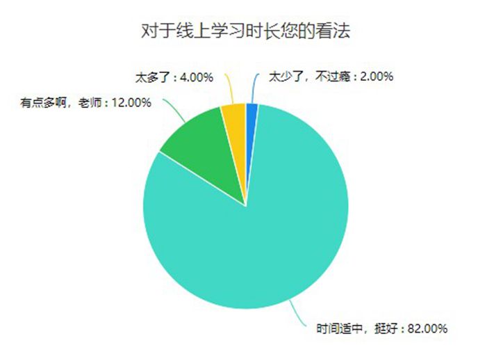 学生学习状态调查:94%的学生状态较好,83%的学校学习心理也较为健康,84%的学生对线上学生强度较为满意、94%的学生能接受、较为喜欢线上直播+辅导模式。