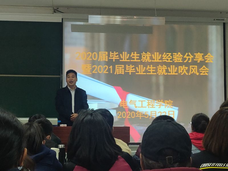 为转变就业观念、提升就业质量,我院于2020年5月22日下午6:30在4104召开电气工程学院2021届毕业生就业“吹风会”暨2020届学长就业经验分享会,我院党委书记达娃次仁、辅导员张晓维、2020届优秀毕业生代表及2021届全体毕业生出席此次会议。