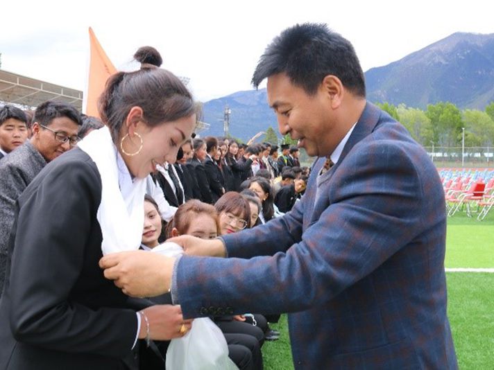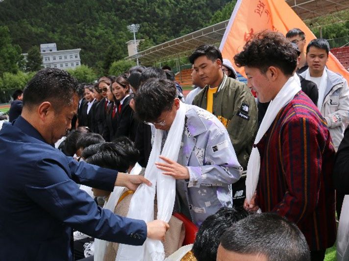 毕业典礼气氛热烈而又温馨,共同交织出一副情深意长的画面。典礼结束后我院达娃次仁书记和普布次仁书记组织全体毕业生摄影留念,为每一位毕业生献上哈达与祝福时,并表示希望每一位毕业生能在今后的工作岗位中收获自己的人生价值,实现既定的人生理想。