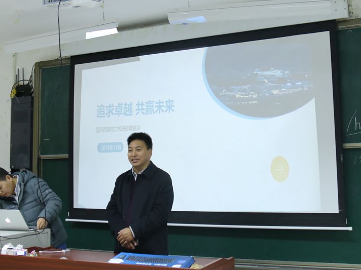 为深入落实习近平新时代和中国特色社会主义思想,结合“不忘初心,牢记使命”和“四讲四爱”主题教育实践活动,响应全国政协“促进就业的政策措施”,坚持就业优先战略,实现更高质量和更充分的就业,帮助我校毕业生积极面对就业,拓宽高校毕业生就业渠道。2019年11月8日下午6:00,国网西藏电力有限公司应邀在我院4105教室开展高校毕业生招聘会。国网西藏电力有限公司人资部李处长和张亮经理,学院党委书记达娃次仁,院长李朝霞,学生辅导员张晓维、毛小军和我院2020届全体毕业生参加此次招聘会。