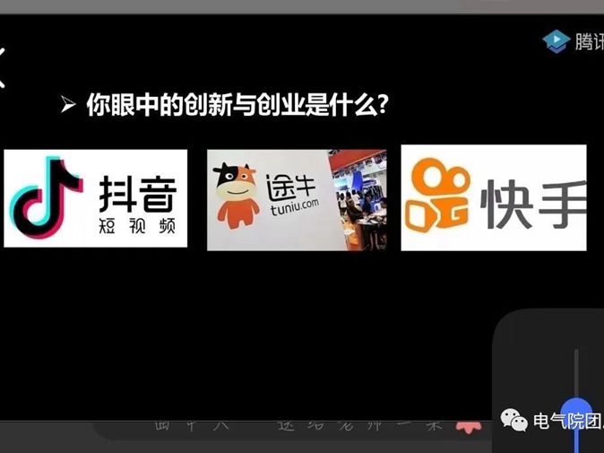 在直播课开始,熊老师简单接受了一下自己;随后,向我们介绍创新创业教育课程是全国高校的新课题,具体讲述创新与创业的具体形式,并带大家了解了中国“互联网+”大学生创新创业大赛,以及阐述了中国创新创业教育的意义和优势;最后,鼓励大家积极参加创新创业比赛,在实践中锻炼自己,要时刻准备迎接机会的到来,正处鲜衣怒马的我们,要敢做,敢拼,不甘放弃!