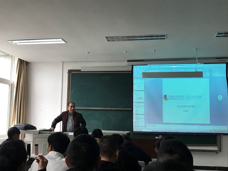为了让同学们更加全面的学习专业知识,更好地将专业理论与实际应用结合起来。为更快地走上工作岗位、适用相应工作打下坚实的基础。电气工程学院积极探索,利用校企合作的机会,于2019年10月8日上午,邀请国家电网林芝供电公司高级工程师、继电保护高级技师李建设来我院开展了“单侧电源网络三段式电流保护”的专题讲座,电气工程学院2016级电自班70余名同学和部分年青教师共同参加。
