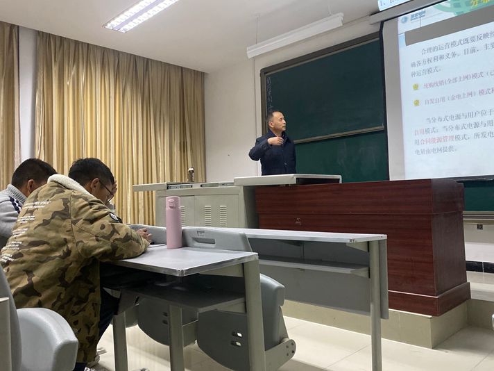 正值全院上下深入开展“不忘初心、牢记使命”主题教育之际,为巩固好大学生所学理论知识,做到学用结合;加强学生对当前就业形势的了解,帮助学生更好地了解企业文化、社会需求,树立正确的职业生涯理念,按照《电气工程学院与国网林芝电力培训中心校企合作协议》,10月25日晚, 国家电网林芝电力培训公司高级工程师郝东光应邀为电气工程学院学生做“分布式电源”的专题讲座,李朝霞院长和2016级电自班70余名同学参加本次讲座。