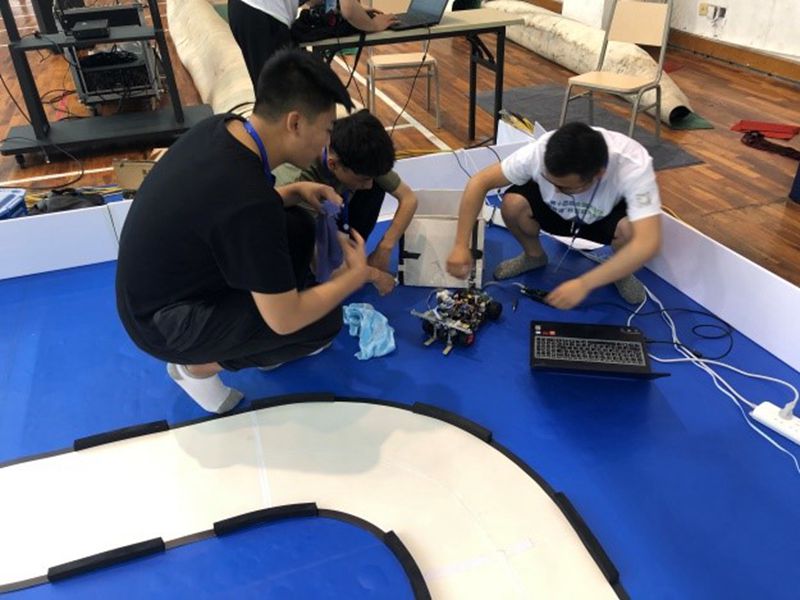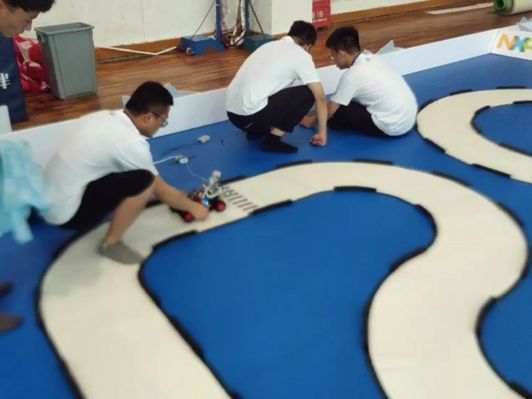 我院指导老师和参赛同学们利用课余和暑期进行了周密准备,从指导老师为参赛同学详细讲解比赛规则,师生共同研讨,到材料准备、线路焊接、赛道设计铺设、软件调试等实验室充满着他们辛勤的汗水。赛前几天,在指导老师的联系沟通下,16级姬峰、罗意两位同学提前去河海大学学习、调试智能车一周,参赛队员反复进行程序的设计、测试和修改,赛前又对全车及程序进行了严格检查,确保万无一失。比赛中,参赛队员间积极进行交流,互相学习,遇到困难一起探讨,共同解决,最终凭借稳定的发挥斩获佳绩。