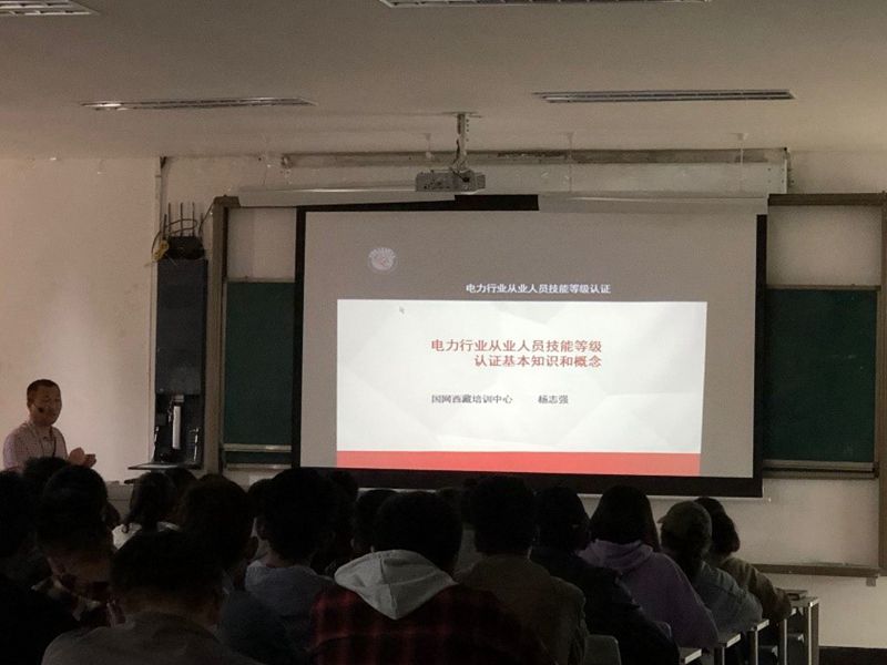 为了让大三、大四的学生直接适应经济和社会发展的需要,了解电力行业从业人员的一些必备技能,我院于2019年8月30日上午特邀请国网西藏培训中心的杨志强主任做电力行业从业人员技能等级鉴定考试的学习讲座,由李朝霞院长主持本次学习会,我院大三、大四学生参加本次会议。