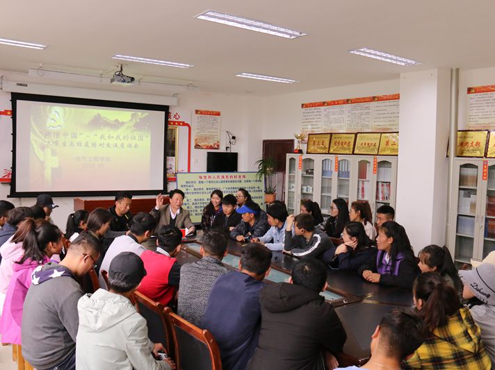 2019年5月23日,在电气工程学院会议室与校友及林芝市退休干部张澈同志与大学生进行座谈,我院16、17级党团学代表60名学生参加会议,由分管学生工作党委副书记普布次仁主持。