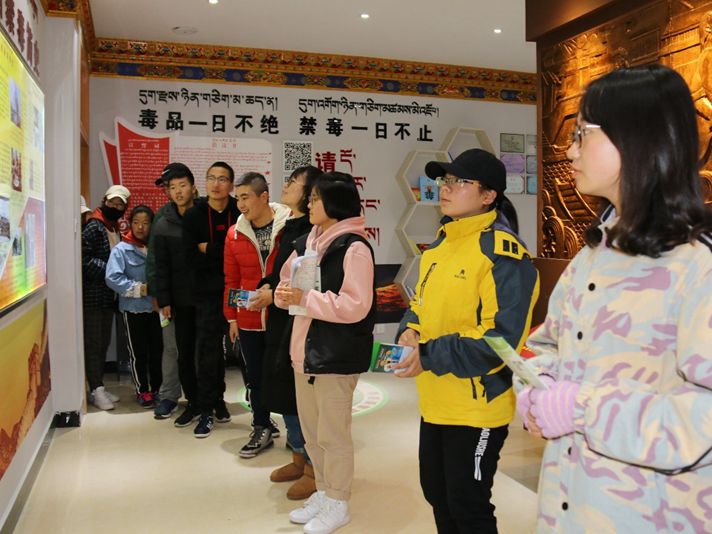 根据学校关于“做好学生毒品预防教育工作”的安排部署,为深入开展禁毒宣传教育活动,让同学们深入了解毒品的危害,树立防毒意识,营造良好的防诈骗、禁毒氛围。在校安保处的积极联系协调,林芝市公安局禁毒支队三位警官的大力支持与帮助下。普布次仁党委副书记于2018年11月4日,带领我院18届全体同学60余人参观林芝市青少年示范性综合实践基地。