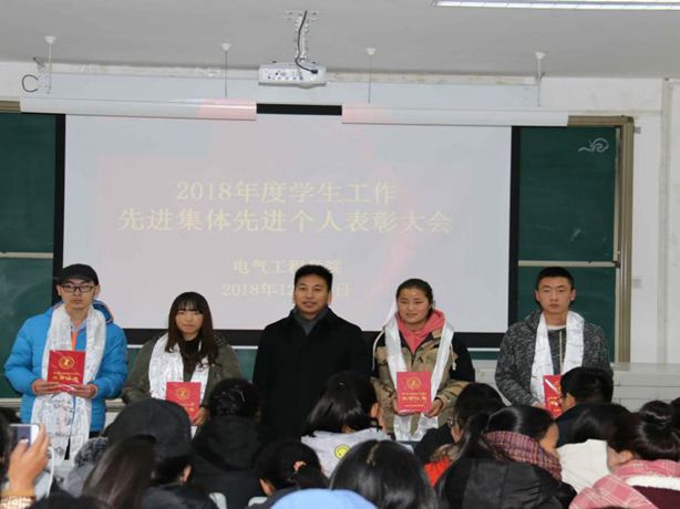 为了加强我院班风、学风建设,塑造典型和树立榜样,营造良好的教书育人氛围,对成绩优秀,品学兼优的同学及先进班集体进行表彰与激励,我院于2018年12月13日下午3:10在4108教室举行了2018年表彰大会。学院党委书记达娃次仁、院长李朝霞、党委副书记普布次仁、副院长许德胜、学生科科长达娃老师以及辅导员石徐、陈相宇和班主任崔崇雨老师出席此次会议。本次会议由17级本科电自二班李亮同学主持,电气工程学院全体学生参加了此次大会。