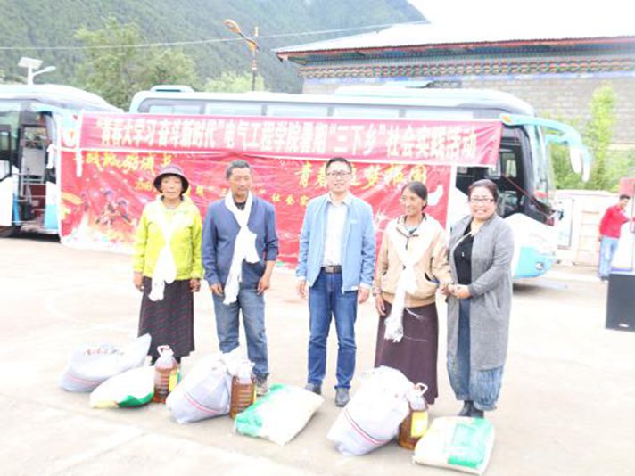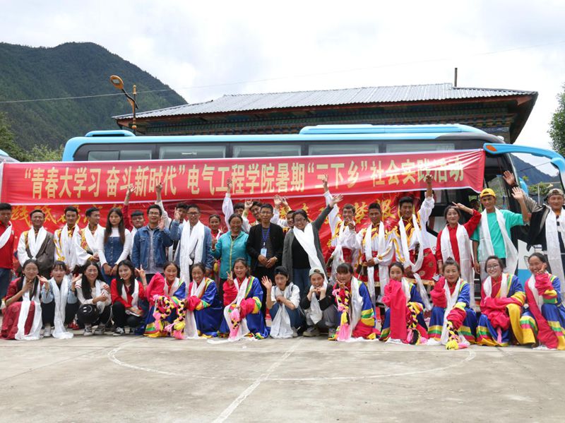 为深入学习贯彻习近平新时代中国特色社会主义思想,引领教育广大青年学生勇做担当民族复兴大任的时代新人,以实际行动助力精准扶贫,服务乡村振兴战略,切实在社会实践中受教育、长才干、作贡献。按照电气工程学院“四讲四爱”群众教育实践活动总体部署,我院充分利用大学生暑期“三下乡”社会实践活动这一载体, 于7月18日在米林县丹娘乡康布热村开展了以“青春大学习奋斗新时代”为主题的2018年暑期“三下乡”社会实践活动。学院学生科科长达娃、学生辅导员石徐带领我院学生40人,参加了本次社会实践活动。