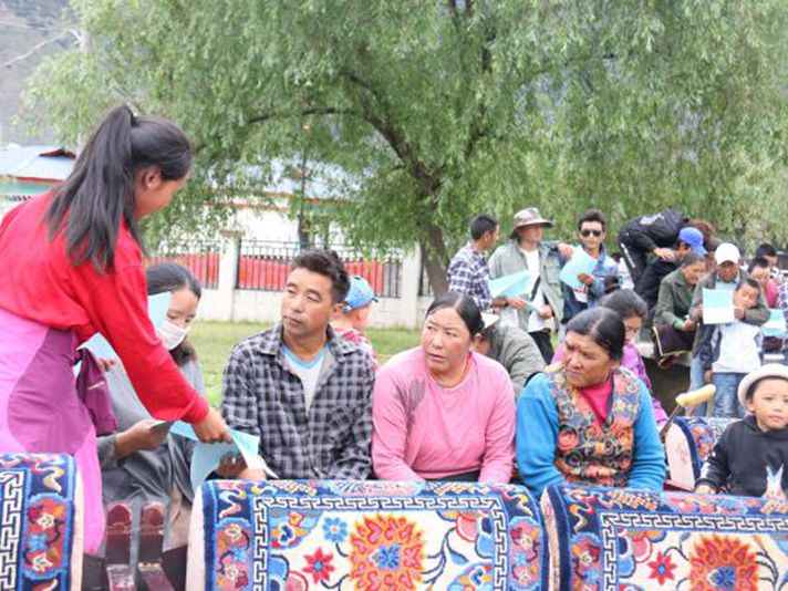 抵达目的地时,我们受到了米林县丹娘乡康布热村村民的热情接待。随后,各成员按照我院“三下乡”活动方案,各组积极投入到各自负责的工作中。活动中,达娃老师和石徐老师向困难户、五保户发放了生活慰问品;随后,辅导员和同学们在村干部的带领下深入到贫困户家中帮助他们打扫卫生、整理家务等实事;而后向村民们宣传十九大精神、习近平新时代中国特色社会主义思想、惠民政策等内容。向他们发放宣传单260余份;最后,为村民奉献了一场精彩纷呈的文艺表演。