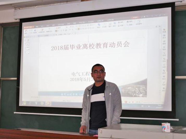 根据学校2018届毕业生教育工作安排和我院毕业工作计划,2018年5月30日下午电气工程学院在4108教室召开2018届毕业离校教育大会。本次教育大会由电气工程学院学生科科长达娃主持。电气工程学院党委书记达娃次仁,电气工程学院辅导员石徐,电气工程学院纪检委员、2014级班主任张涛及全体2018届毕业生参加了此次会议。