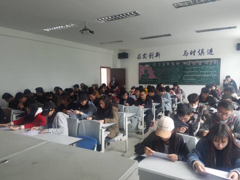 为了严格同学们的考风考纪,充分发挥高校诚信教育的作用,响应学校的号召,提高同学们的诚信意识和素质,努力培养社会需要的诚信人才。于2018年6月15日,分管教学副院长蒋晓艳在我院4308教室组织召开考前动员大会,此次大会共有76名考生及教学办教师蔡娟、扎西顿珠参加。