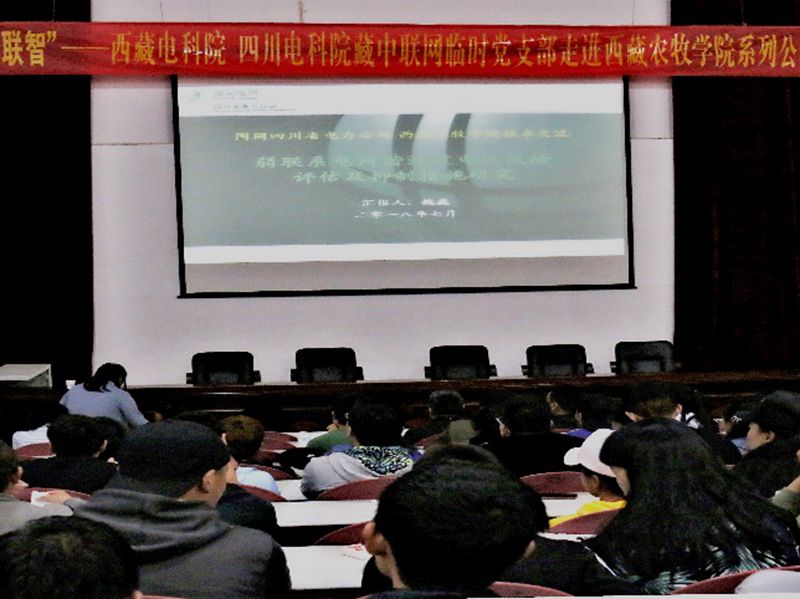报告会上,国网西藏电科院藏中联网500千伏输变电调试工程临时党支部副书记、电网技术中心副主任张俊进行西藏电网发展规划讲座;国网四川电科院张华绍 “藏中联网500千伏输变电工程”,最后是由国网四川电科院、四川省公司首届十大杰出青年魏巍博士为同学们讲解了藏中联网工程谐波谐振过电压风险与对策。