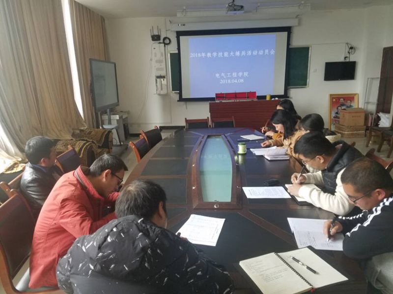 为贯彻落实自治区教育厅《关于在全区各级各类学校开展教师技能大练兵活动的意见》和《西藏农牧学院“教师教学技能大练兵”活动实施方案》,4月8日下午,我院在电气工程学院会议室组织召开“教师教学技能大练兵”动员大会,会议有电气学院副院长蒋晓艳主持,我院专任教师共9人参加此次大会。