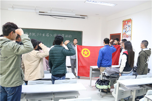 活动开始,在庄严的团歌下,同学们面对着鲜红的团旗、高举着右手庄重宣誓,重温了自己对团虔诚的誓言,表达了为团的事业奋斗毕生的决心。接着,我院团总支书记以及团支书代表也发表了讲话,讲话后,同学们纷纷表示要在日常学习中发挥先锋模范作用,进一步弘扬奉献精神,建立团员的新形象,以实际行动为团旗增光添彩。