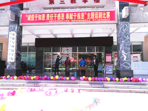 本次话剧表演的出场顺序依次是资环、水利、食品、动科、植科、电气工程学院,每个学院的同学们都进行了充分的准备。在表演时,演员借助一些道具,真情实感地投入表演;整个表演惟妙惟肖,给在场的老师和观众带来了喜悦和感悟。同时,同学们表演时结合一些现实生活中常见的事例,用实例让同学知道感恩、责任及爱心在我们的生活中重要意义。活动于下午19:00正式结束。