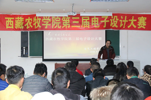 11月5日上午,由教务处主办、电气工程学院承办的“西藏农牧学院第三届电子设计大赛”在4108教室隆重举行了开幕式典礼。院党委委员、副院长郭永刚、教务处处长张涪平、植科学院,食品学院,资环学院的党委书记、院长参加了开幕式典礼,开幕式由我院院长李朝霞主持。