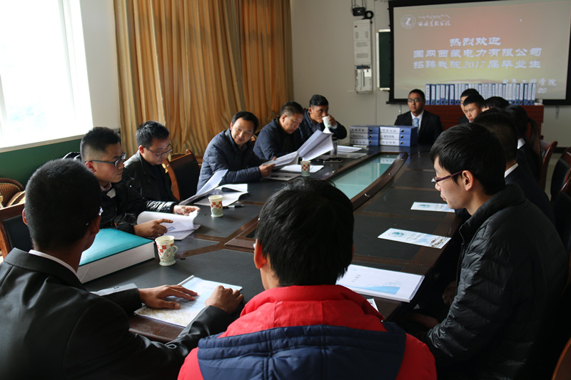 首先我院党委书记达娃次仁对此次国网公司到我院开展2017届毕业生招聘推荐会表示热烈欢迎,并简要介绍了我院学生的基本情况,广大学生也特别重视此次招聘会,精心准备了自荐材料,着装上做到了更加干净整洁。接着公司负责人播放了有关国网公司简介的视频,同学们通过观看视频,对公司的基本情况有了一定的了解;最后,公司在我院会议室对学生的自荐材料进行了审阅,并对同学们提出的有关工作环境、待遇、发展空间等方面问题做了详细说明,此次招聘会持续了近3个小时,得到顺利开展。