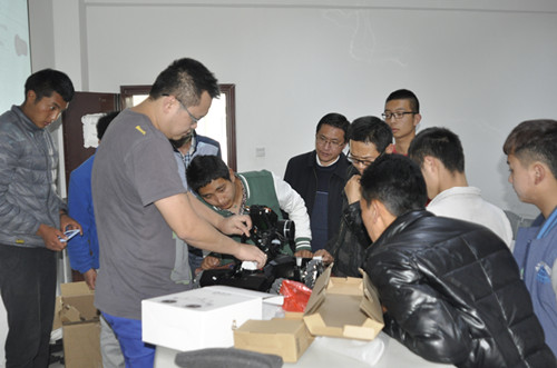 5月15日下午,由院学生工作处、院团委牵线搭桥,电气工程学院代表西藏大学农牧学院首次参加5月23日在成都举办的由共青团中央和全国学联主办的 “全国大学生机器人大赛”。“RoboMasters中国区预选赛”是其三大项目之一,西藏大学农牧学院代表全区各高校首次参加此项大赛,电气工程学院领导高度重视,精心安排,从各年级中挑选精兵强将组建队伍并按照主办方要求命名,命名参赛队伍“雪域战狼”战队。针对我院首次参加“RoboMasters全国机器人大赛”,邀请协办此次大赛的深圳大江公司代表及哈尔滨工程学院校友办公室的老师为参加此次大赛的我院6名学生及2名带队老师组织开展相关培训活动。