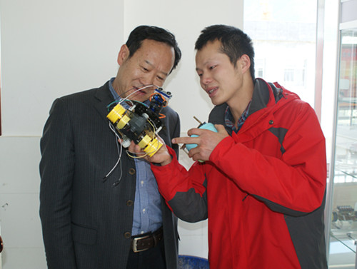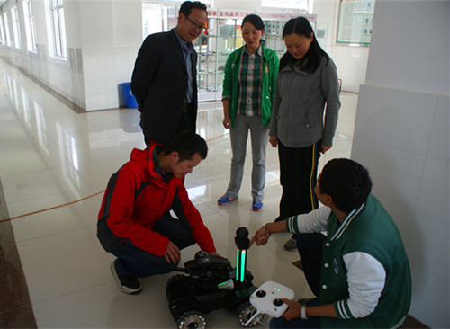 为深入推进我院“五教创新”工作,丰富实践环节内容,结合我院专业特点,在校教务处的大力支持下,我院设立电气工程学院学生创新作品展示橱窗,展示近几年我院自治区级、校级学生创新实验项目成品。以此,调动我院学生对本专业课程学习的积极性、主动性和创造性,鼓励学生参与创新研究活动,营造学院创新创造氛围。5月29日下午,校教务处张涪平处长莅临我院检查指导橱窗完成情况及观摩我院“雪域战狼战队”参赛机器人炮车。