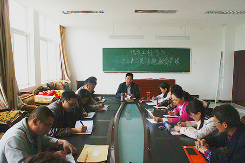 2015年7月1日下午,电气工程学院党委组织全体教工党员、预备党员、建党积极分子在学院会议室举办 “三严三实”专题教育党课,专题教育由学院党委书记达娃次仁同志主讲。达娃次仁同志首先传达了学校党委关于推进“三严三实”专题教育活动的通知精神,他提到,今年6月11日,学校党委书记纪建洲同志为全院县处级以上领导干部开展“三严三实”专题党课,标志着我校“三严三实”专题教育全面启动。随后,达娃次仁同志从为什么要开展“三严三实”专题教育的目的和“三严三实”基本内涵两个方面做了专题教育。达娃次仁同志强调,学院全体党员领导干部要深刻领会“三严三实”要求,将这一要求作为我们为人做事的基本准则,“三严三实”即严以修身、严以用权、严以律己,谋事要实、创业要实、做人要实,从锤炼党性、用权为民、为政清廉、求真务实、敢于担当、公道正派等方面,深刻阐明了新时期党员领导干部作风建设的新要求。我们要把“三严三实”作为一面镜子,经常对照检查,看修身、用权、律己、谋事、创业、做人否达标,深入查摆自己在思想境界、素质能力、作风形象等方面存在的问题和不足,自觉把贯彻“三严三实”要求内化于心、外化于行;切实转变作风,采取有力措施,在谋实事、干实事、求实效上下功夫。
