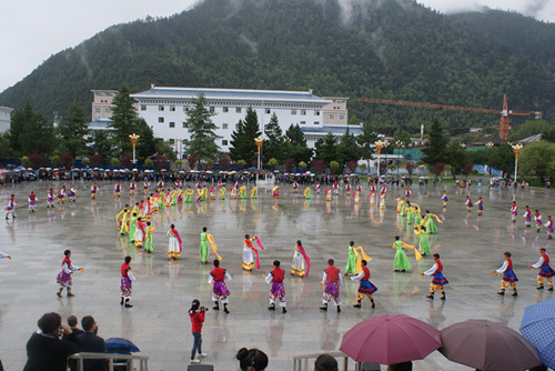 六、举行锅庄舞比赛。9月5日,在文体馆广场,伴着低沉典雅、浑厚豪迈、凝炼深沉的音乐,来自各个学院的六支参赛队伍激情四射、纵情欢舞,分别表演了我区六个地市的具有不同特色和民族韵味的舞蹈,他们步伐矫健、动作挺拔,舞姿舒展洒脱、,优美飘逸,展现了西藏各族人民在祖国大家庭中的幸福生活和对共产党、对社会主义的讴歌和赞颂。我学院在此次比赛中荣获二等奖。