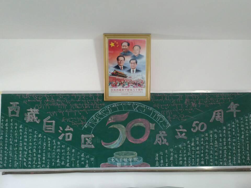 为切实做好自治区成立50周年庆祝活动,大力开展爱国主义教育和民族团结教育,电气工程学院在院团委的领导下于近期开展了系列宣传庆祝活动。