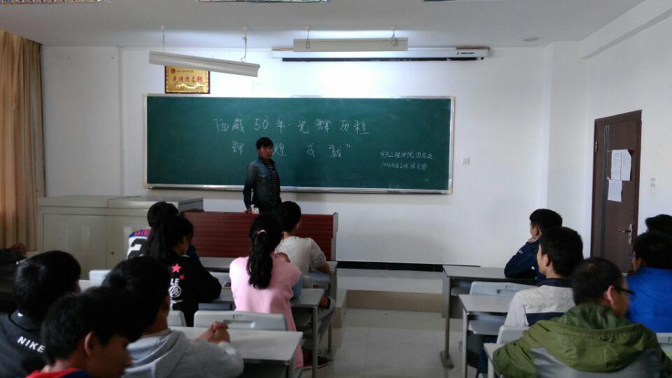 二、开展主题班会。8月20日以来,我学院团总支分别组织各班级团支部开展了一次以“西藏50年•光辉历程 辉煌成就”为主题的班会。通过组织广大团员青年学习、讨论《庆祝西藏自治区成立50周年宣传提纲》,讲述看到的、听到的、经历的身边发生的巨大变化等,使广大团员青年真切感受半个世纪历经沧桑巨变,半个世纪日臻和谐稳定,在学习中感悟西藏的发展变化,在讨论中明确自身肩负的历史使命,在潜移默化中受到一次爱国主义教育。