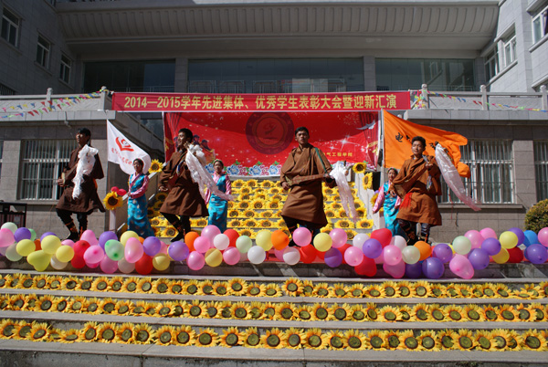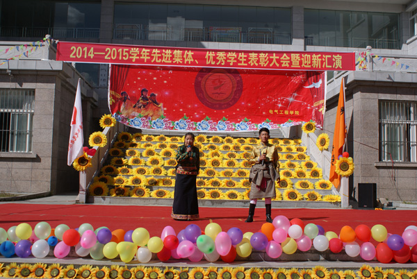 金秋十月,在这个收获的季节,电气工程学院迎来了2014—2015学年表彰、换届大会暨迎新汇演。出席本次活动的领导有电气工程学院党委书记达娃次仁、院长李朝霞、党委副书记普布次仁、和副院长胡鹤轩,以及全体电气工程学院的学生。